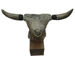 2013Stier met echte koperen stierenring in de neus. Gekleurd met oxide.