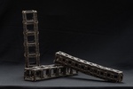 2018Zwart/bruine klei samengebonden met touw en draad. 2x33x7x5 cm. 1x37x5x3 cm.