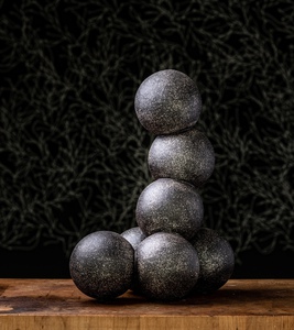 2016Bolwerk, gestapelde bollen afgewerkt met mat zwarte glazuur.