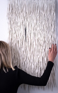 2021Witte porseleinen knoopjes samengebonden tot een geheel.